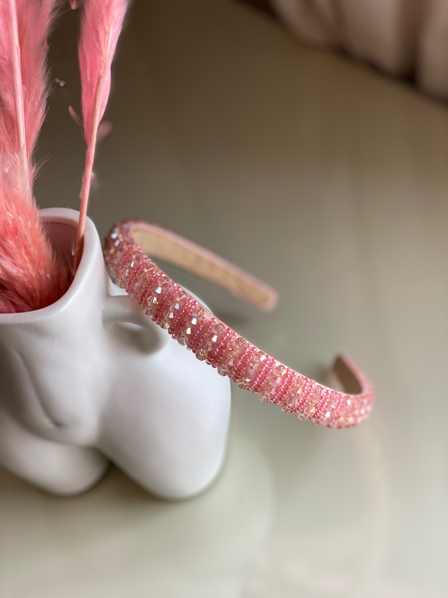 Add some glamour to any look with this gorgeous skinny headband in Bubblegum Pink. This headband is covered in diamantes that will leave a sparkle wherever you go. Style with straight or or your hair waved for a super glamorous look.