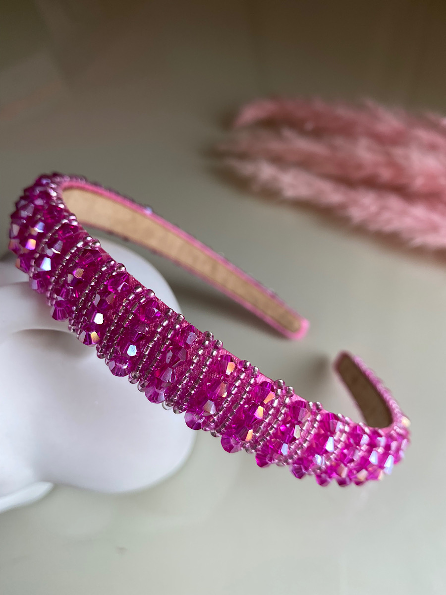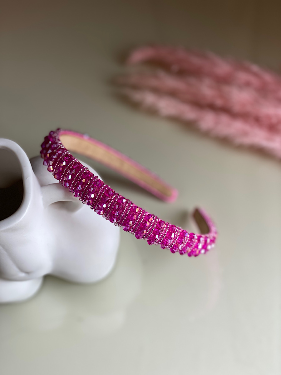 Add some glamour to any look with this gorgeous skinny headband in Royal Fuchsia. This headband is covered in diamantes that will leave a sparkle wherever you go. Style with straight or or your hair waved for a super glamorous look.