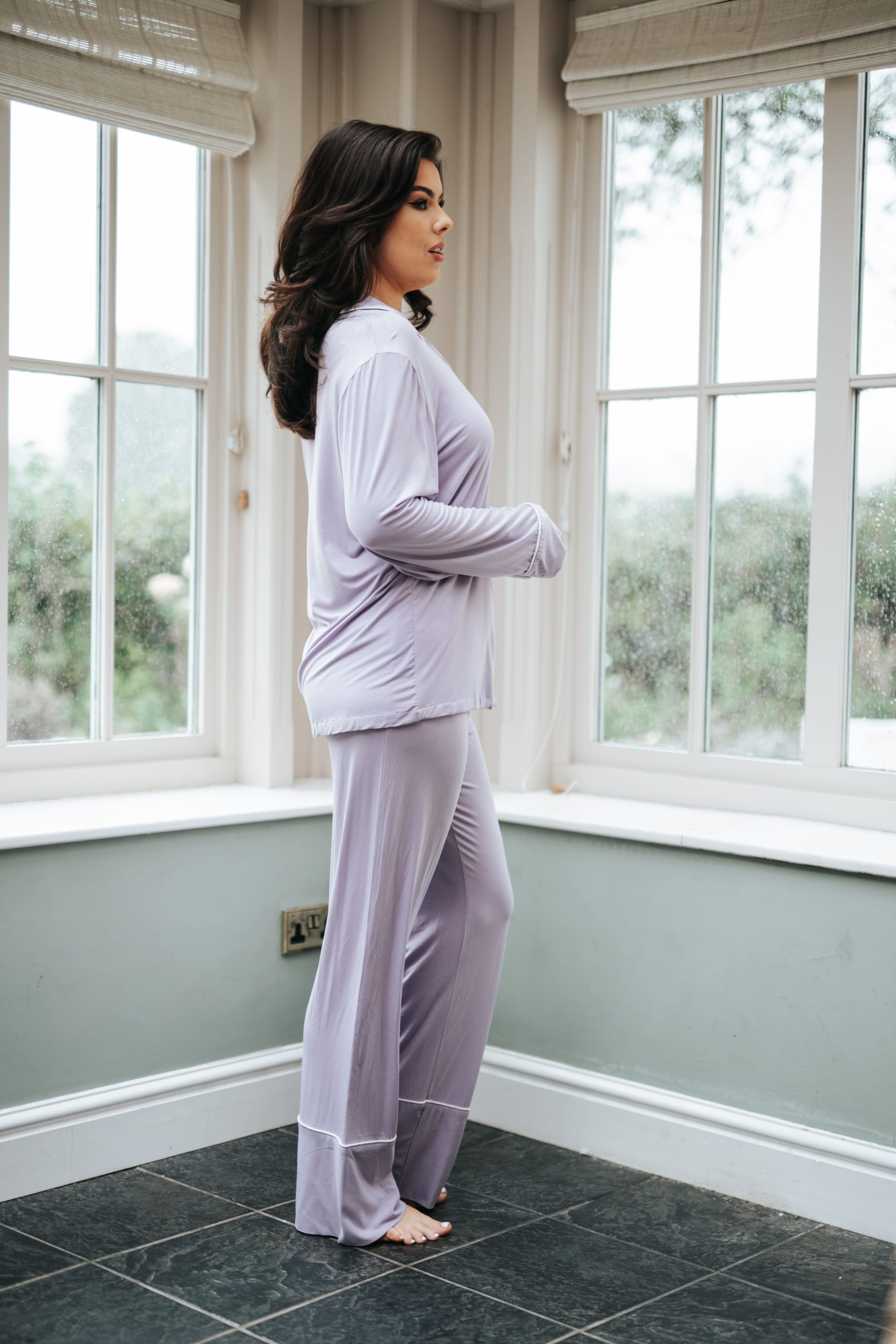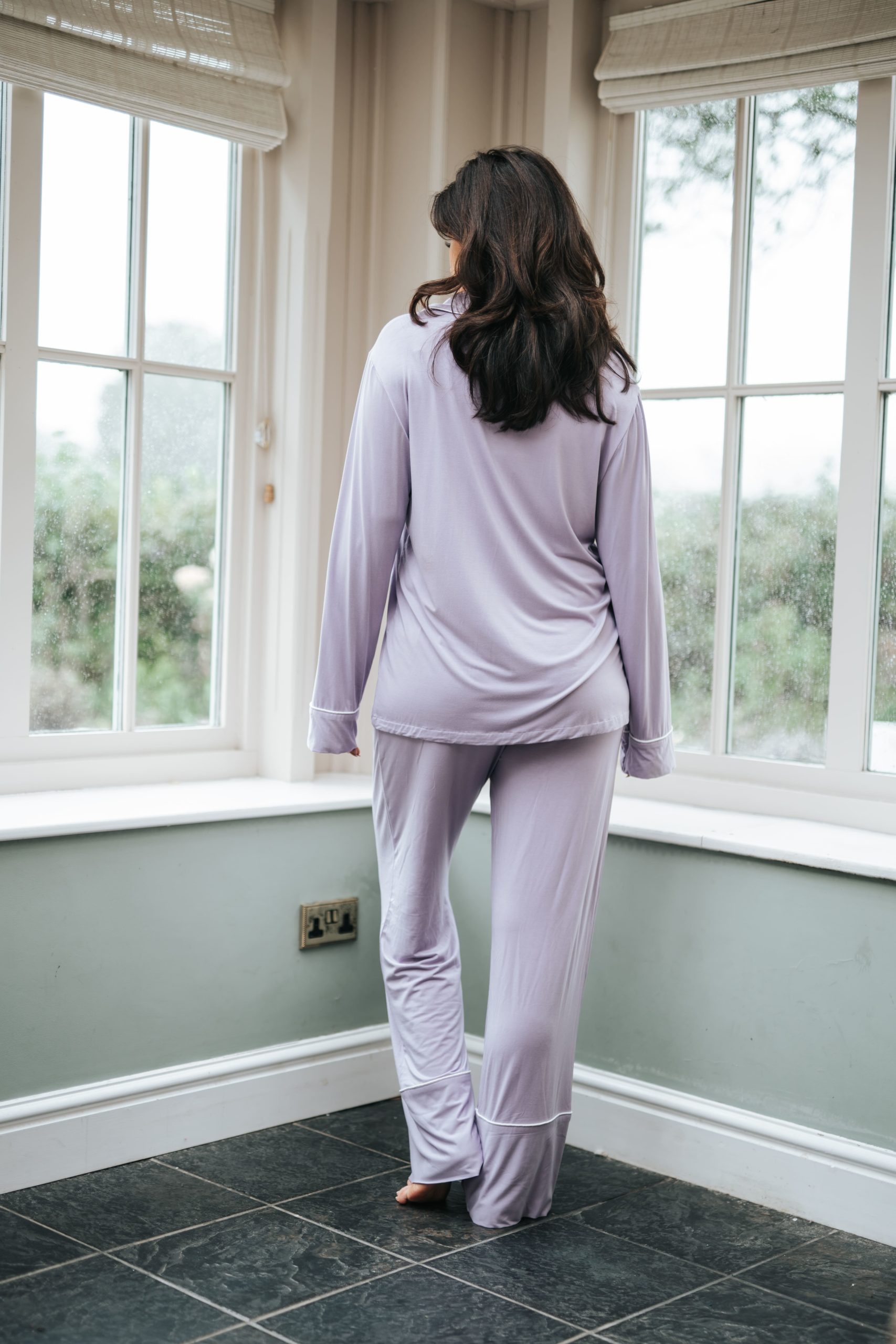 Escape into a moment of pure tranquility in our Lavender pyjama set, featuring our softer than soft signature modal material for ultimate comfort. This set features a long sleeve revere collar shirt and a wide leg trouser design crafted with our signature double layer premium fabric with a ultra comfortable wide elasticated waistband. This set is completed with decorative white piping.