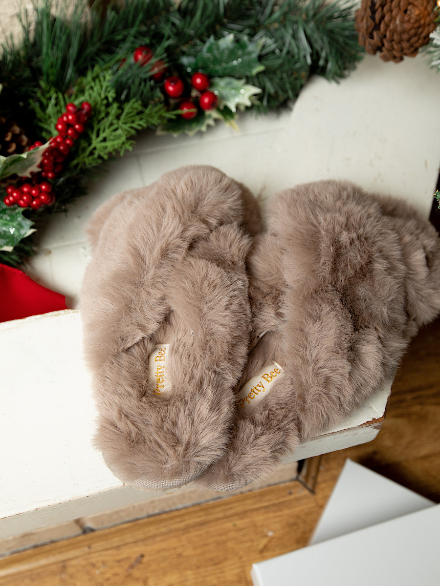 • Extra plush faux fur slippers