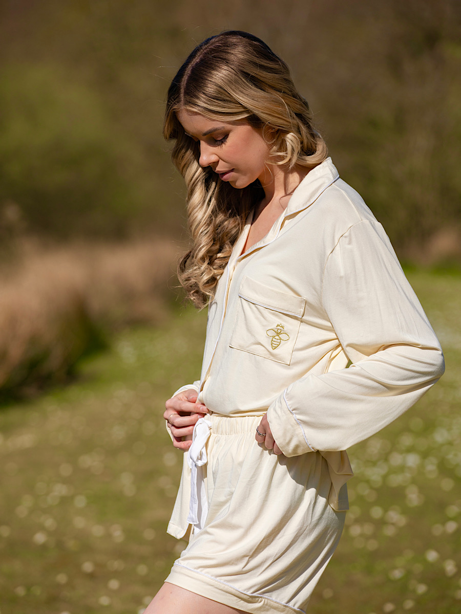 Our super-soft pj set in premium modal-cotton has been designed in a relaxed fit for ultimate comfort. This pj set is super light-weight, breathable and silky smooth to touch, perfect if you don’t want to wear anything too heavy to bed. This pj set is perfectly piped with a beautiful contrasting finish.
