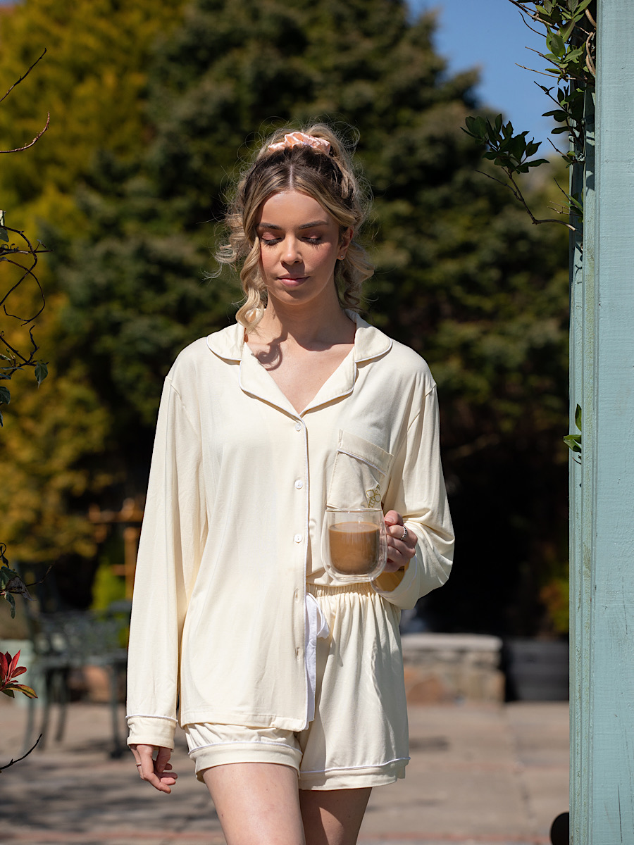Be the first to review “Modal Cotton Button Up Short PJ Set- Lemon”